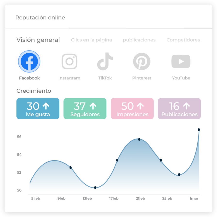 Mejora la visibilidad de tu negocio con una página web profesional y gestiona de manera eficiente tus canales digitales a través de un panel especializado en redes sociales. Destácate a nivel local con nuestra herramienta Rankings.