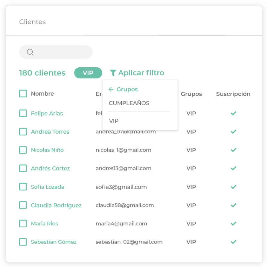 Gracias a las potentes herramientas de e-mail marketing puedes asegurarte de fidelizar a tus clientes con los grupos o segmentos que creas en Acelera. Usa distintas estrategias como campañas de correos , tareas automáticas o SMS y maximiza la retención.